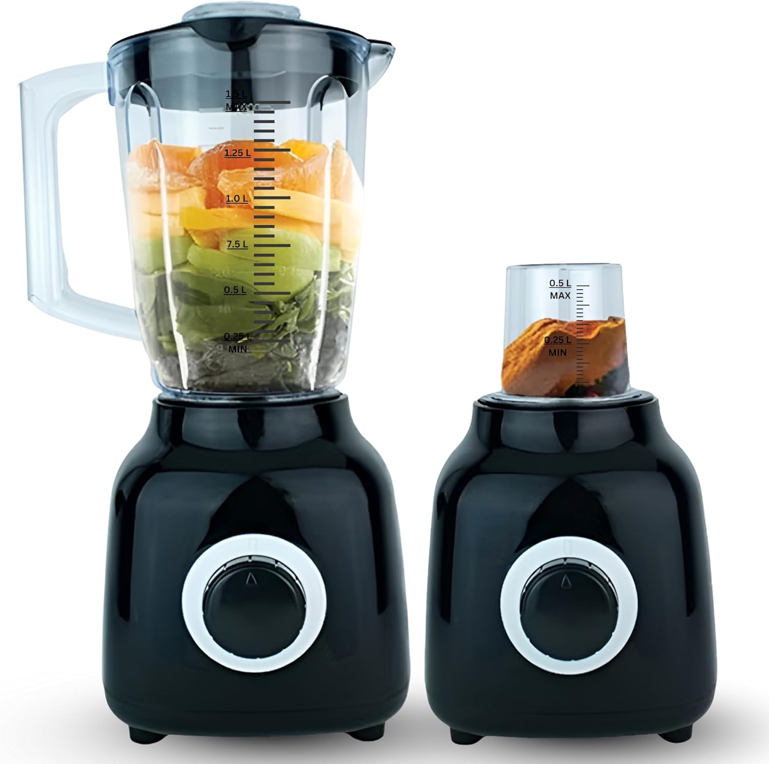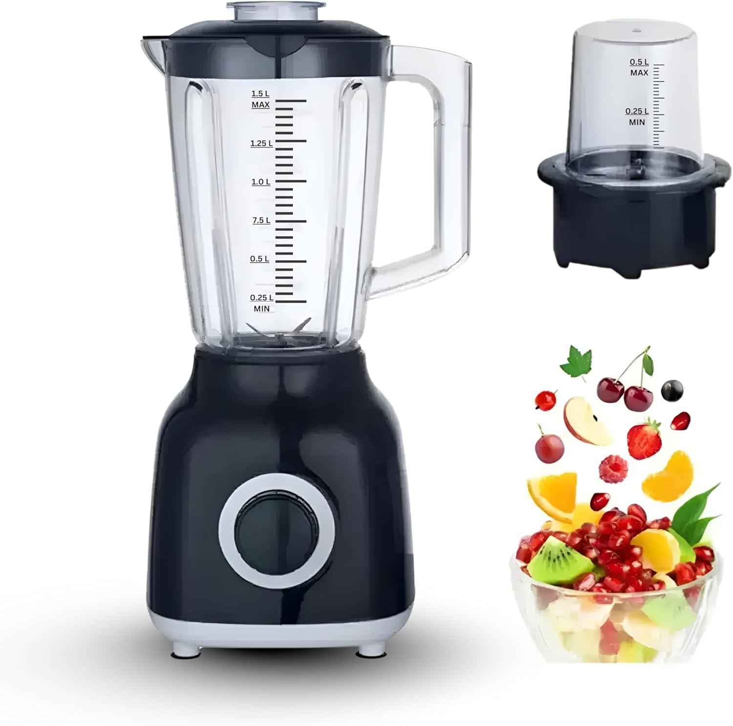 • 🍹 Multi-Purpose 1.5L Jar + 0.5L Grinder Mill: Large BPA-free jar for blending and a separate mill for grinding coffee, herbs, and spices.