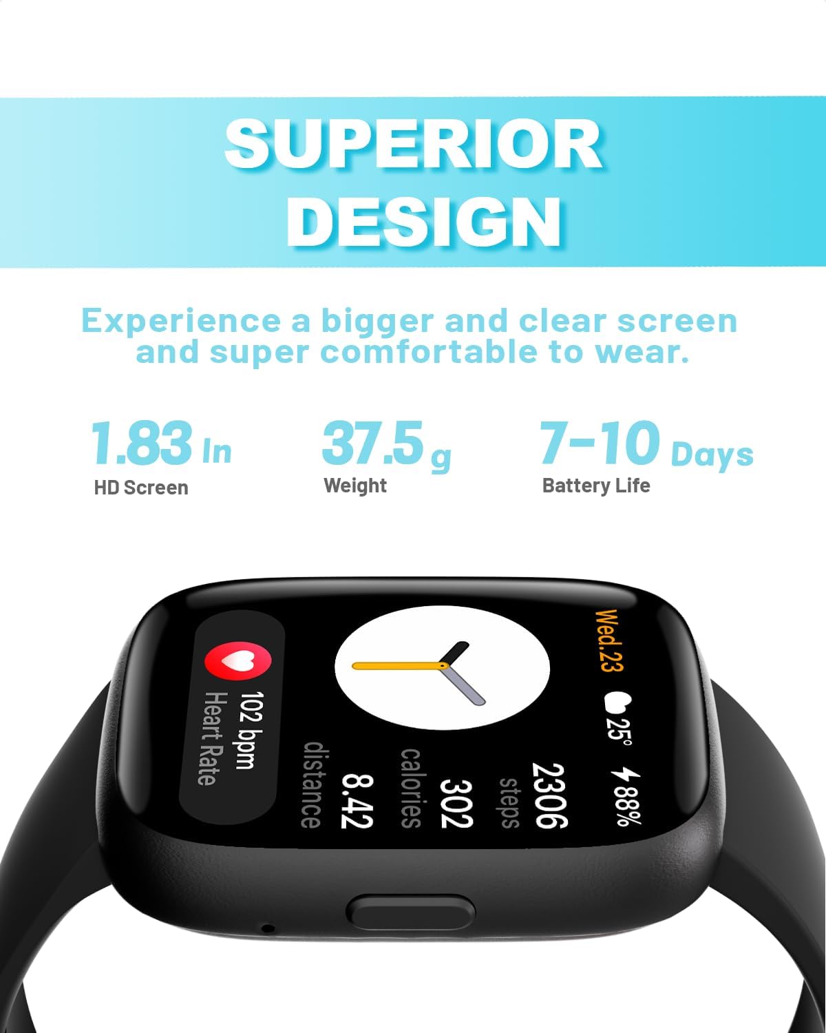 - Extended Battery Life: Enjoy uninterrupted smart living with our long-lasting battery. With up to 30 days of standby time, 20 days in power saving mode, and 7-10 days of daily usage, and only takes 2.5 hours to fully charge, you can wear your smartwatch without worrying about frequent charging. Please note that the exact duration of use will vary with the frequency of use.