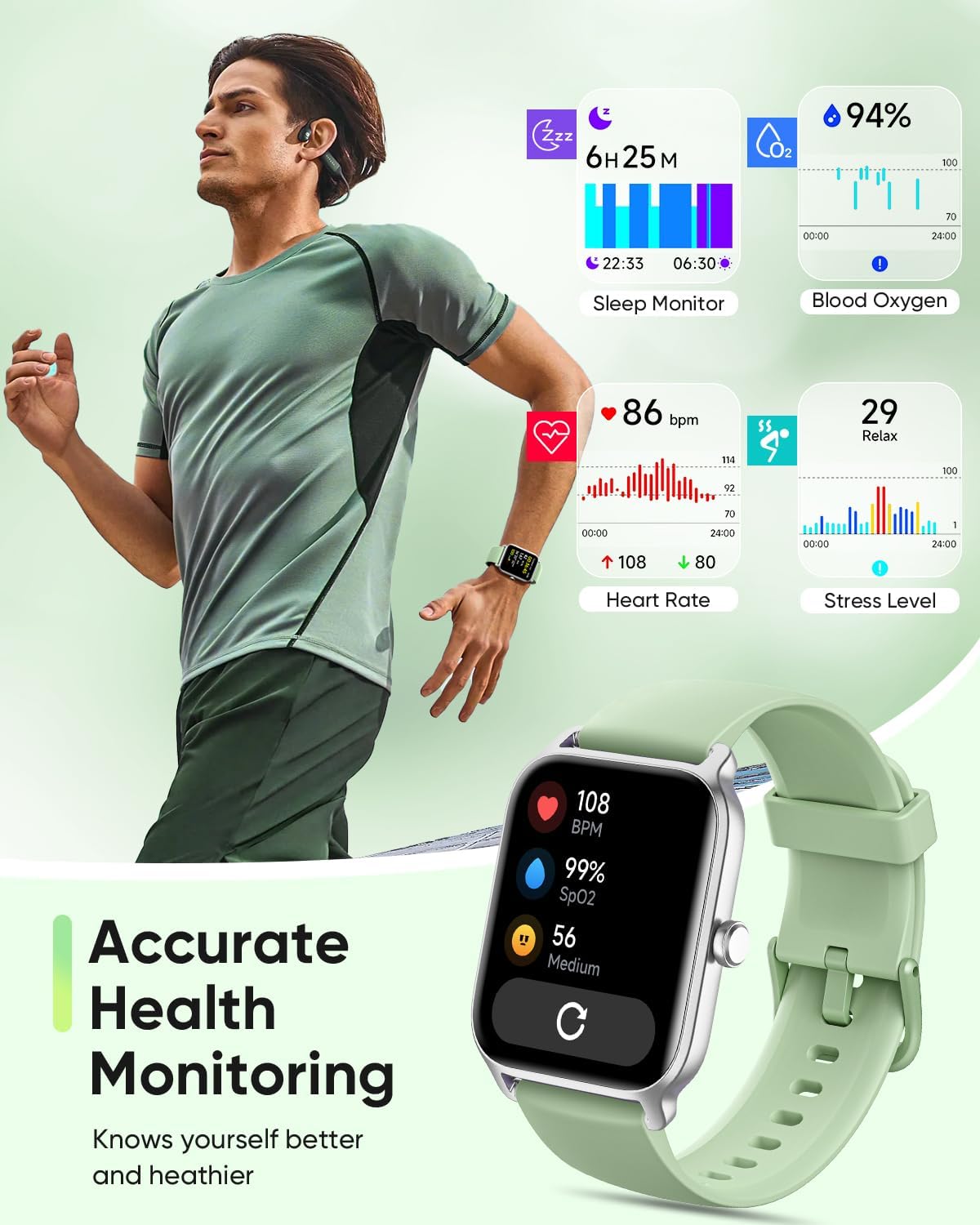 - 100 sports modes and IP68 waterproof: The Fitpolo sports watch supports over 100 sports modes, including running, walking, hiking, badminton, basketball, boating, climbing, cycling, fitness, soccer, swimming, yoga and more. This lets you accurately track your exercise time and calories burned, helping you maintain a healthy balance between activity and rest. It features an IP68 waterproof rating, ensuring worry-free use even while washing your hands, face or engaging in sweaty activities.